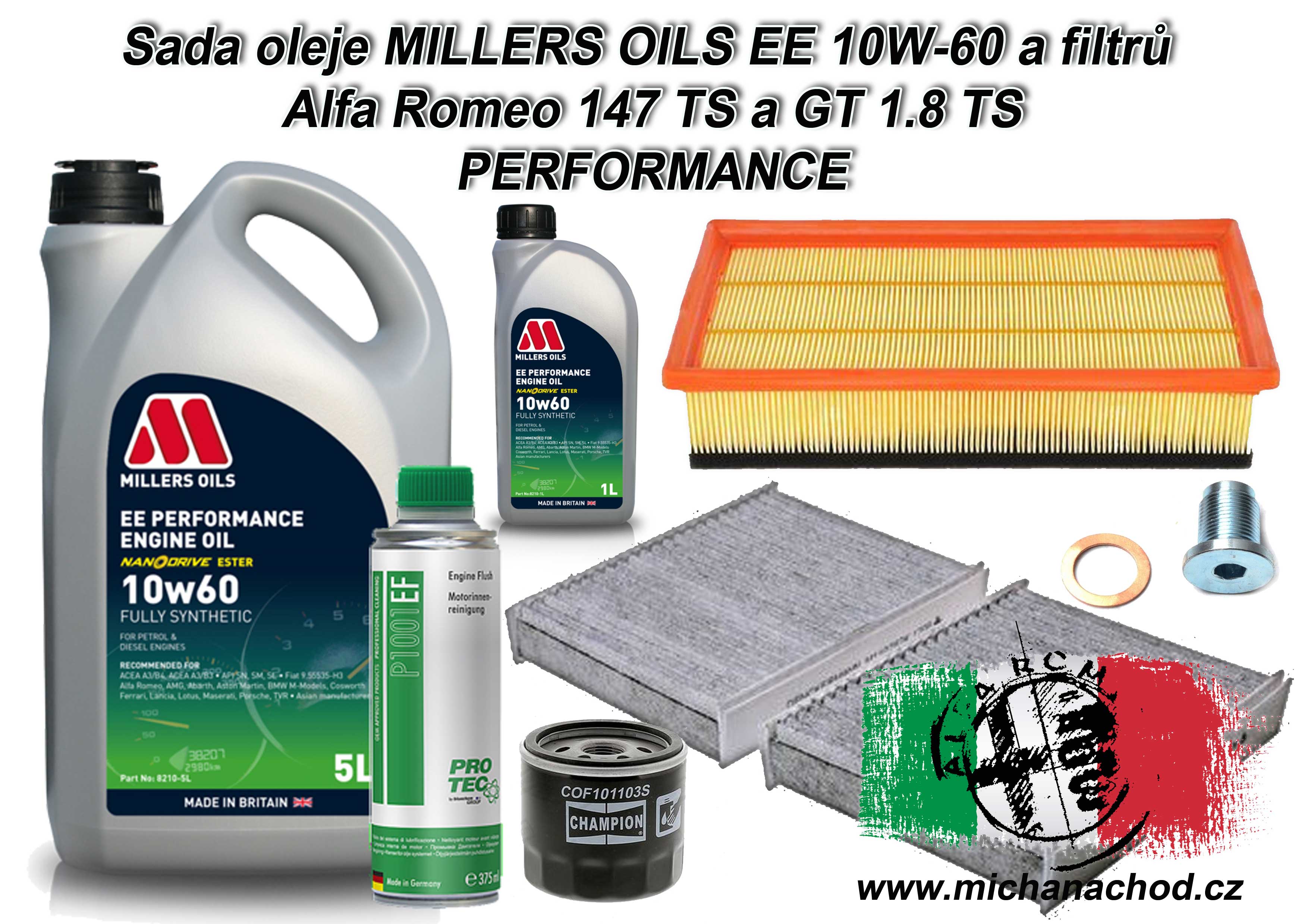 Sada určená speciálně pro Alfu Romeo 147 a GT s motory Twin Spark 1.6, 1.8 a 2.0 - POZOR GT 2.0 JTS má jiný filtr a je pro něj určená jiná sada!